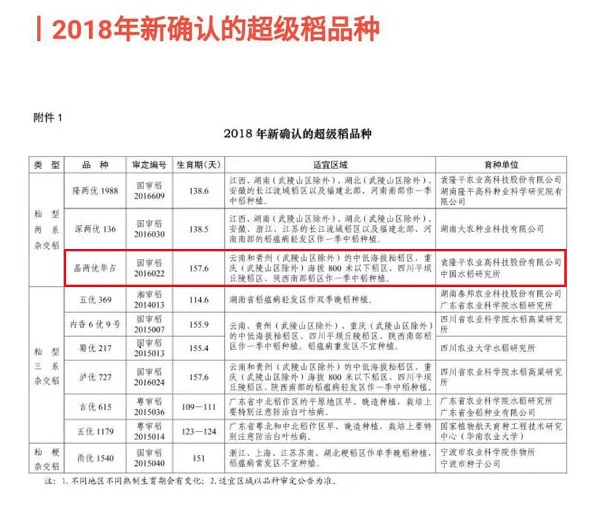 3月6日,根據(jù)《農(nóng)業(yè)部辦公廳關(guān)于發(fā)布2018年超級(jí)稻確認(rèn)品種的通知》,經(jīng)各地推薦和專家評(píng)審,我公司重點(diǎn)主推品種晶兩優(yōu)華占被確認(rèn)為2018年超級(jí)稻品種。