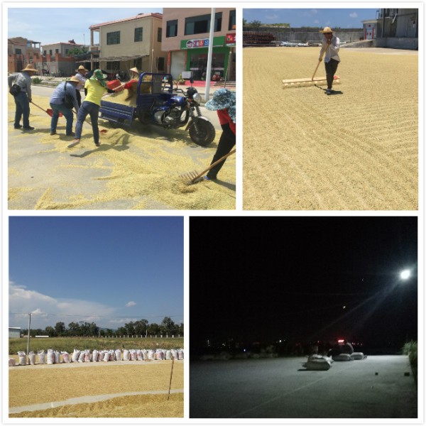 當(dāng)旭日東升,微風(fēng)拂面,田間蛙鳴蟲囂漸漸聲小,白衣草帽已時(shí)隱時(shí)現(xiàn); 當(dāng)烈日當(dāng)頭,風(fēng)聲漸息,枝頭蟬鳥凄鳴聲嘶力竭,黝黑臉頰已汗水成河; 當(dāng)熱浪炎炎,陽光刺眼,泥中赤腳躬身風(fēng)吹不動(dòng),眼神專注而炯炯有神; 當(dāng)夜幕降臨,燈火升明,歸途緩步而行神情從容,鼻尖亦可聞陣陣稻香。 5月的海南島,已經(jīng)進(jìn)入炎炎夏日,亦是我們制種進(jìn)入豐收時(shí)節(jié)。當(dāng)清晨微風(fēng)拂面,一夜的蛙鳴蟲囂,漸漸聲小。在微風(fēng)吹起的陣陣波紋中,隱約可見草帽在田間時(shí)隱時(shí)現(xiàn),時(shí)而駐足彎腰,間而邁步前行。遇見在田間忙活的老伯,上前問候和交談,仔細(xì)叮囑清除雜株,嚴(yán)格進(jìn)行除雜保純工作。 當(dāng)正午風(fēng)聲漸息,烈日炎炎,枝頭蟬蟲掀起陣陣凄鳴。在炎炎烈日的炙烤下,萬物皆在尋找著遮擋陽光的容身之所,避免被火熱的太陽無情摧殘;在稻穗連綿的田野里,有那么一群人,頭頂烈日,腳踏赤土,眼神專注而炯炯有神。并非他們能無視這火熱的太陽,而是他們從事著這大地上最陽光的事業(yè)。 當(dāng)傍晚夜幕降臨,村莊漸漸升起燈火,路上車燈交織閃耀。田間漸漸響起歡呼雀躍的聲音,仿佛萬物都在慶祝涼爽的夜月到來。生產(chǎn)人緩步行走在傳來陣陣流水聲的田野,不時(shí)能聞到飄來的陣陣稻香,讓人神情從容而身心舒悅。 收割正當(dāng)時(shí)!望著金燦燦的田野,讓人忍不住分享豐收的喜悅。每一個(gè)崗位上的人們,眼神含笑,一絲不茍的進(jìn)行著收割前的準(zhǔn)備工作。收割機(jī)清理、運(yùn)輸車清倉、打掃曬場,緊鑼密鼓,緊張有序。當(dāng)露水漸干,隨著收割機(jī)的轟鳴聲,驚醒了田里的小精靈,也意味著南繁制種最后的戰(zhàn)役正式打響。 收割上來的種子必須及時(shí)運(yùn)達(dá)曬場攤薄晾曬;為搶占晴好天氣,在曬場攤曬的種子必須頻繁翻動(dòng)迅速降低水分達(dá)到入庫要求;為及時(shí)將種子送達(dá)農(nóng)戶手中,已達(dá)標(biāo)的種子及時(shí)打包日夜兼程發(fā)往星城。 在祖國制種最南端,有這樣一群人,既腳踏實(shí)地亦仰望星空,聽蟲鳴鳥叫看云卷云舒。為打贏南繁制種最后的戰(zhàn)役,隆平生產(chǎn)人愿夕與新月宿,曉隨殘?jiān)滦小?/p>