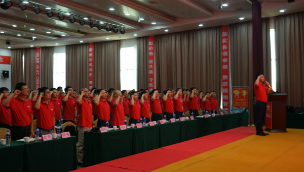 會上,在營銷總監盧成林的帶領下,全體參會人員就落實市場管控、強化營銷協同作出鄭重承諾。