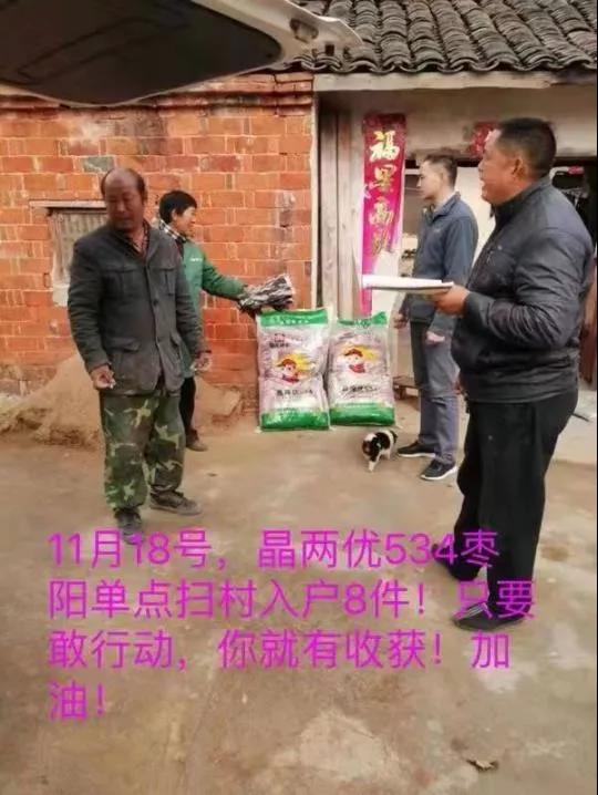 11月18日,晶兩優534棗陽單點掃村入戶8件,只要敢行動,你就有收獲,加油!