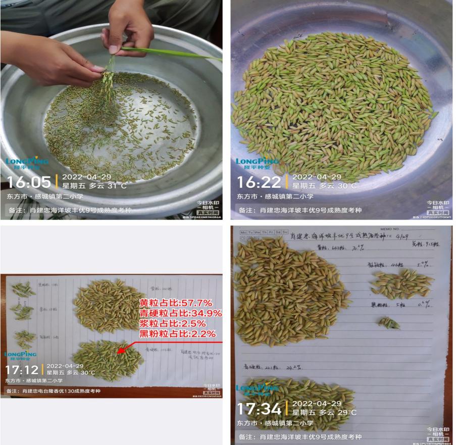 根據(jù)噴施九二O時(shí)間及田間情況,取具有代表性的3蔸田塊進(jìn)行脫粒考成熟度,結(jié)合天氣情況,待到7-8成熟收割。