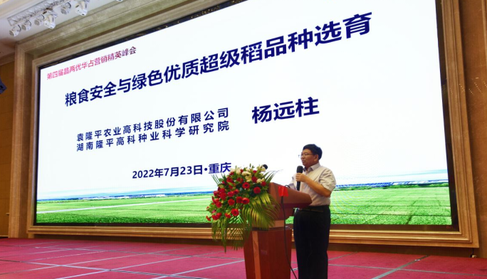 會上,楊遠柱院長以《糧食安全與綠色優質超級稻的選育》為題作專項報告,報告結合新時期國家糧食安全對超級稻選育發展形勢進行了分析,并就隆平高科品種選育進展以及晶兩優華占的選育、特征特性、栽培技術要點等內容做了詳盡的分享。晶兩優華占十年榮耀之路,正是從選育到栽培的孜孜不倦,從推廣到營銷的凝心聚力、搶抓機遇一步步所成就。最后楊院長又為大家帶來了新的品系——颶兩優系列的分享,颶兩優系列是繼臻兩優、瑋兩優系列后的又一強勢品系,颶820S是以隆臻36S、華瑋338S為親本,改良培育出的綠色優質廣適高產不育系,堅持優良品種的培育,以驅動公司產業快速發展,從源頭保障國家糧食安全。