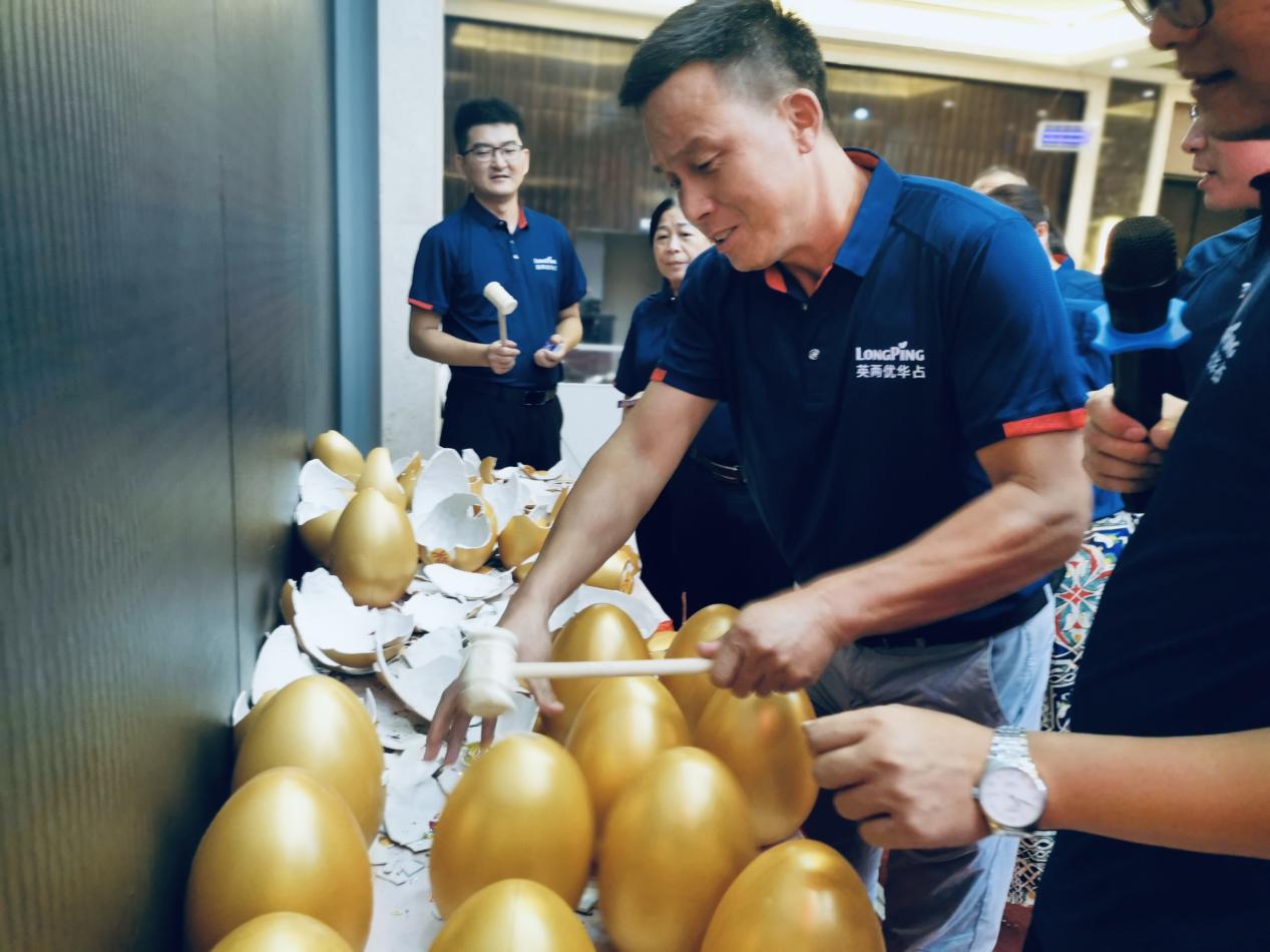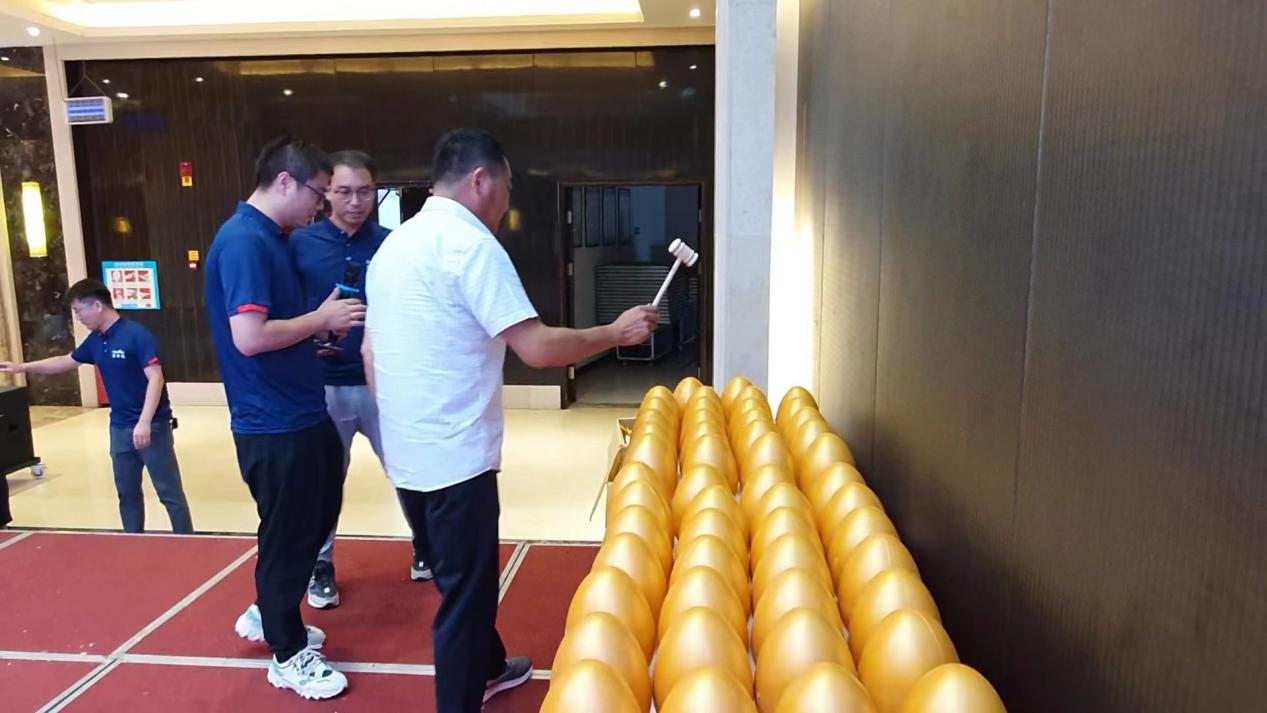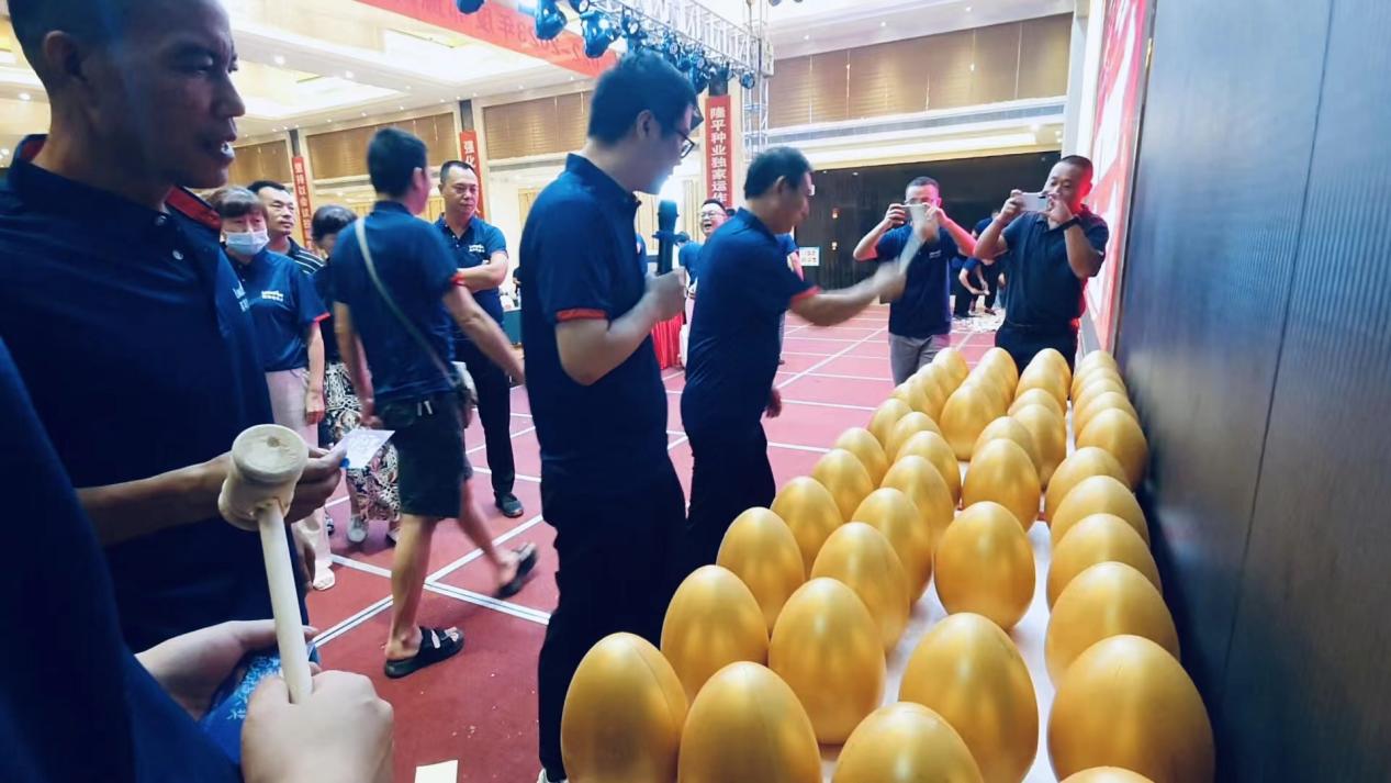 緊接著,公司為了激發(fā)現(xiàn)場營銷精英積極投入到英兩優(yōu)華占推廣事業(yè)當(dāng)中,開展了隆重的砸金蛋活動。各縣市的合作伙伴踴躍打款,爭取砸金蛋名額。