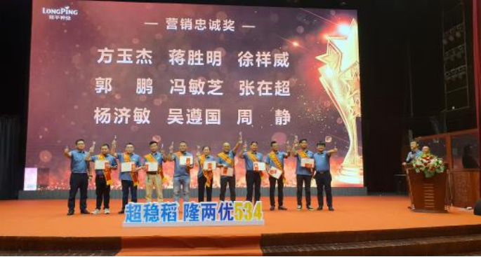 接下來,會議進行至表彰先進環節,面對激烈的行業競爭與極端的氣候條件,隆平優秀的經銷商合作伙伴們堅定信心,保持定力,排除萬難,為持續做好隆兩優534銷售工作做出了杰出貢獻,他們用田間地頭的身影證明自己的同時,也給大家樹立的優秀的榜樣!