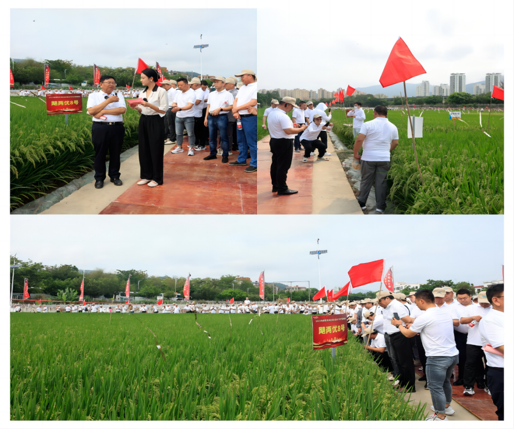 和風(fēng)煦日,春光正好,15日上午,會議組織全體與會人員前往隆平高科南繁基地進(jìn)行新品種田間觀摩,以現(xiàn)場觀摩和線上直播方式同步進(jìn)行,會議邀請了隆平高科種業(yè)科學(xué)院院長楊遠(yuǎn)柱老師,通過楊院長現(xiàn)場講解以及實地觀摩,颶兩優(yōu)、晨鋒優(yōu)等系列強(qiáng)勢組合獲得客戶高度一致認(rèn)可,信心大為提振,相信隆平種業(yè)一定會賦能合作伙伴,帶領(lǐng)大家把事業(yè)做大做強(qiáng),同時,線上直播也引起了業(yè)內(nèi)的高度關(guān)注。