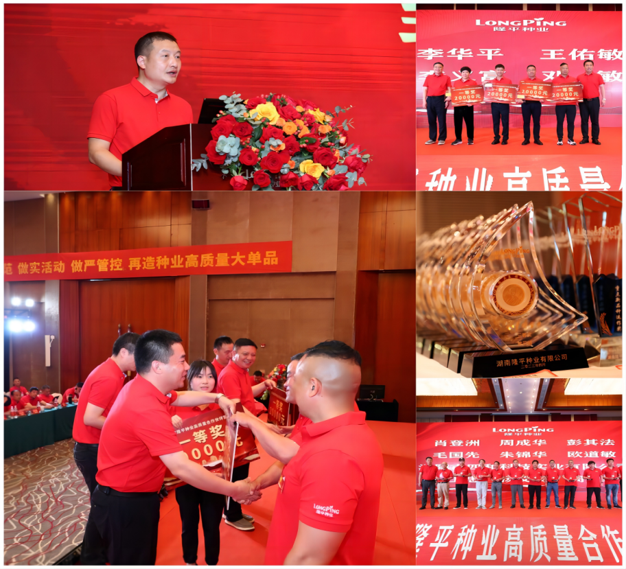 接下來會議進(jìn)入到頒獎環(huán)節(jié),由楊震宇總監(jiān)宣讀“價值貢獻(xiàn)獎”“銷量增量獎”“重點新品種運作獎”的表彰文件,水稻事業(yè)部副總經(jīng)理楊文星、隆平種業(yè)總經(jīng)理盧成林等領(lǐng)導(dǎo)為獲獎代理商頒獎,期望受表彰的代理商再接再厲,展現(xiàn)新佳績,實現(xiàn)新作為,希望其他各代理商以受表彰的個人和單位為榜樣,積極推進(jìn)營銷工作,搶抓種業(yè)發(fā)展機(jī)遇,共建共享再創(chuàng)種業(yè)輝煌。