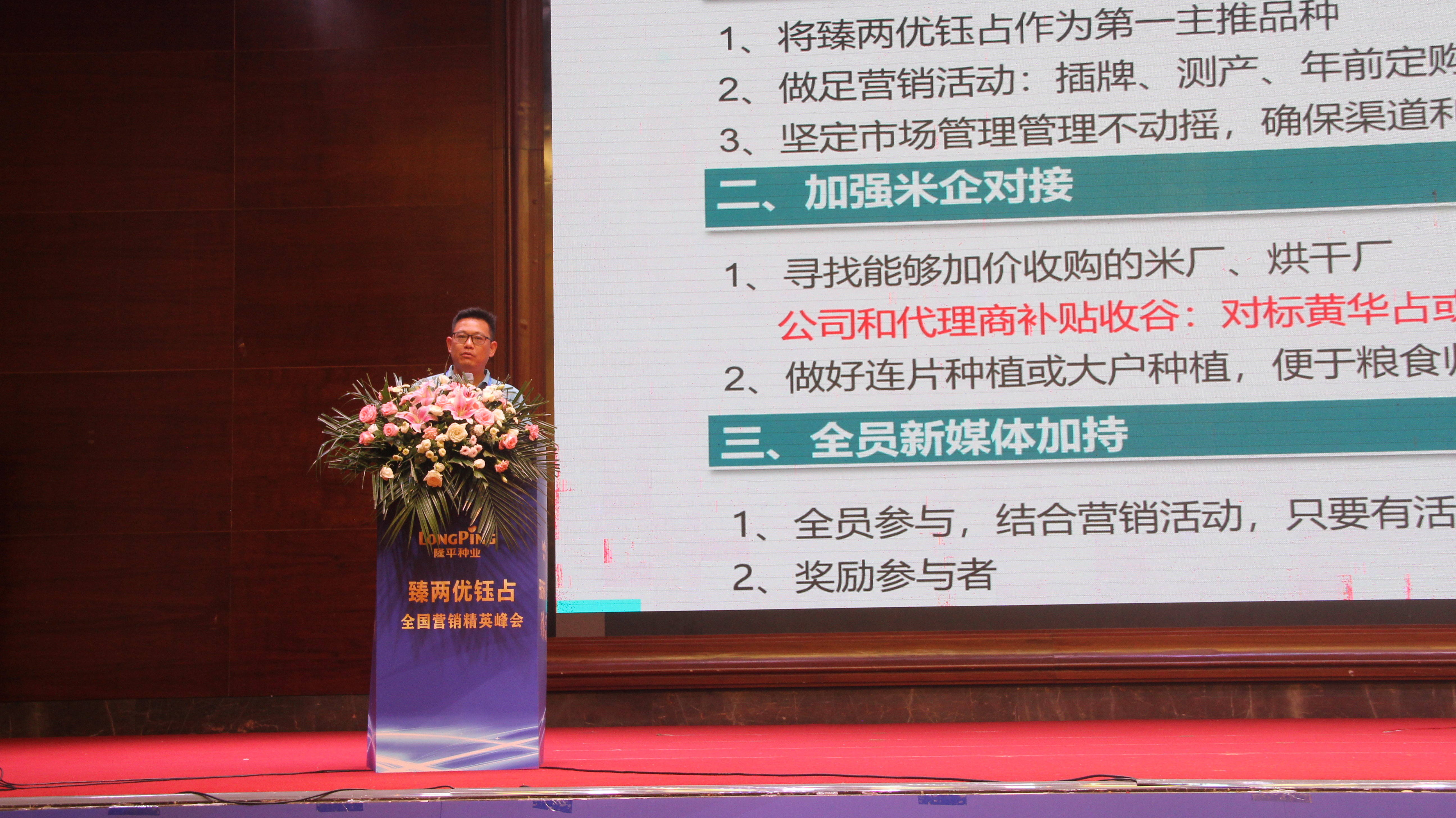 會議最后,隆平種業總經理盧成林先生對會議進行了總結,盧總表示,在當前市場形勢下,臻兩優鈺占品種特性高度切合市場需求和市場發展趨勢,我們要搶抓機遇、乘勢而上,把握好臻兩優鈺占快速增長的重要契機,聚力前行;我們要精心做好渠道布局,建設高質量運營隊伍,全力支持系統性營銷活動;我們要在市場管控,缺口營銷等方面持續發力,舉全公司之力將臻兩優鈺占打造成新一代超級大單品!希望廣大合作伙伴聚焦隆平、保持定力、堅定信心、敢為人先,追求卓越,讓我們共同開創鈺占新時代,開啟未來財富之門!