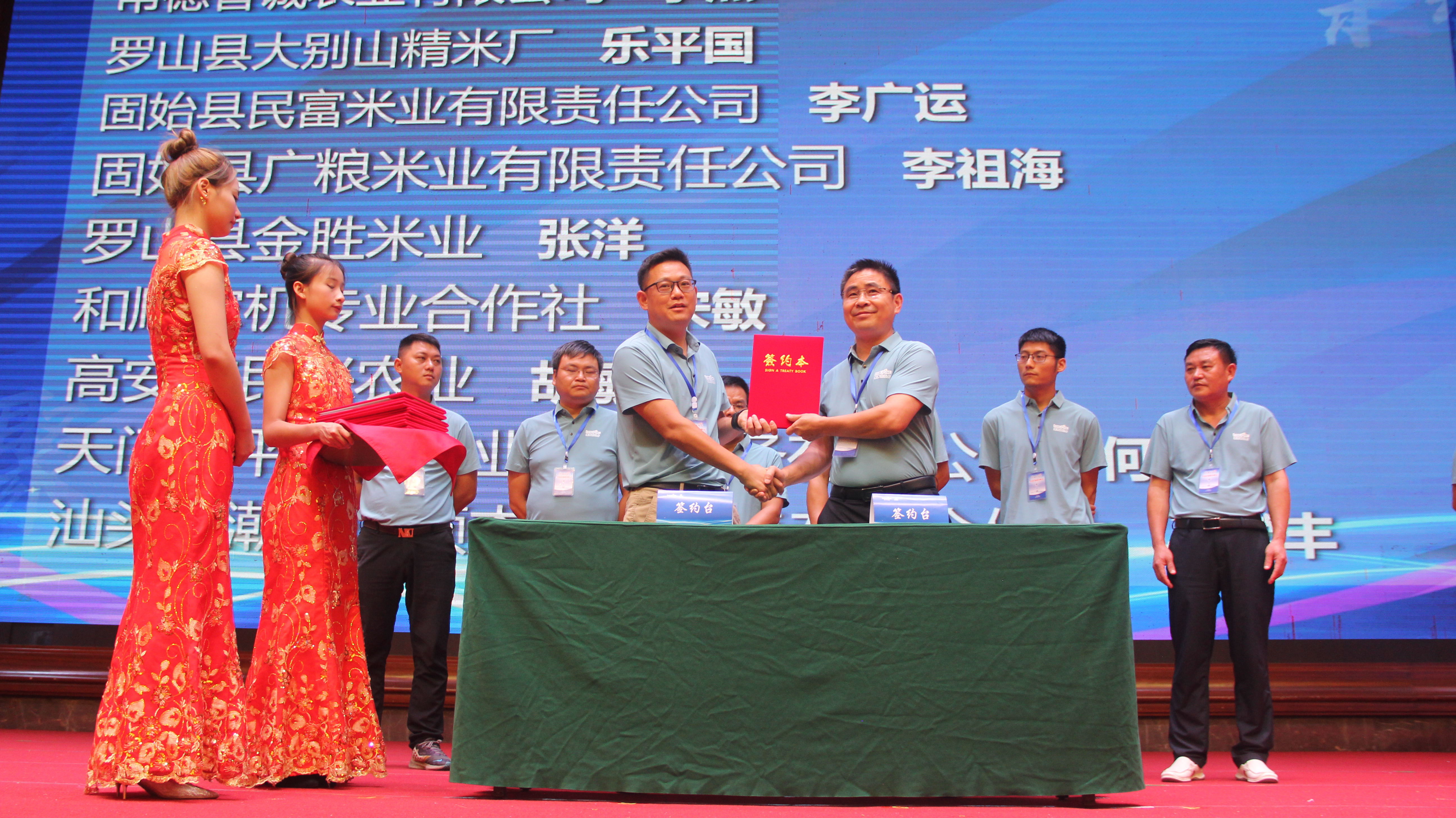 大會第五項,由湖南隆平種業有限公司總經理助理、品牌負責人黃年豐先生作“23-24年度臻兩優鈺占全國運作方案”的主題報告,從品種定位、整體目標、重點營銷舉措、公司要求、市場管控五個方面對臻兩優鈺占運作進行了詳細闡述,勢要將臻兩優鈺占打造成超級大單品,開創鈺占新時代!隨后,在現場簽約儀式上黃年豐先生與米業代表簽定了意向收購協議。