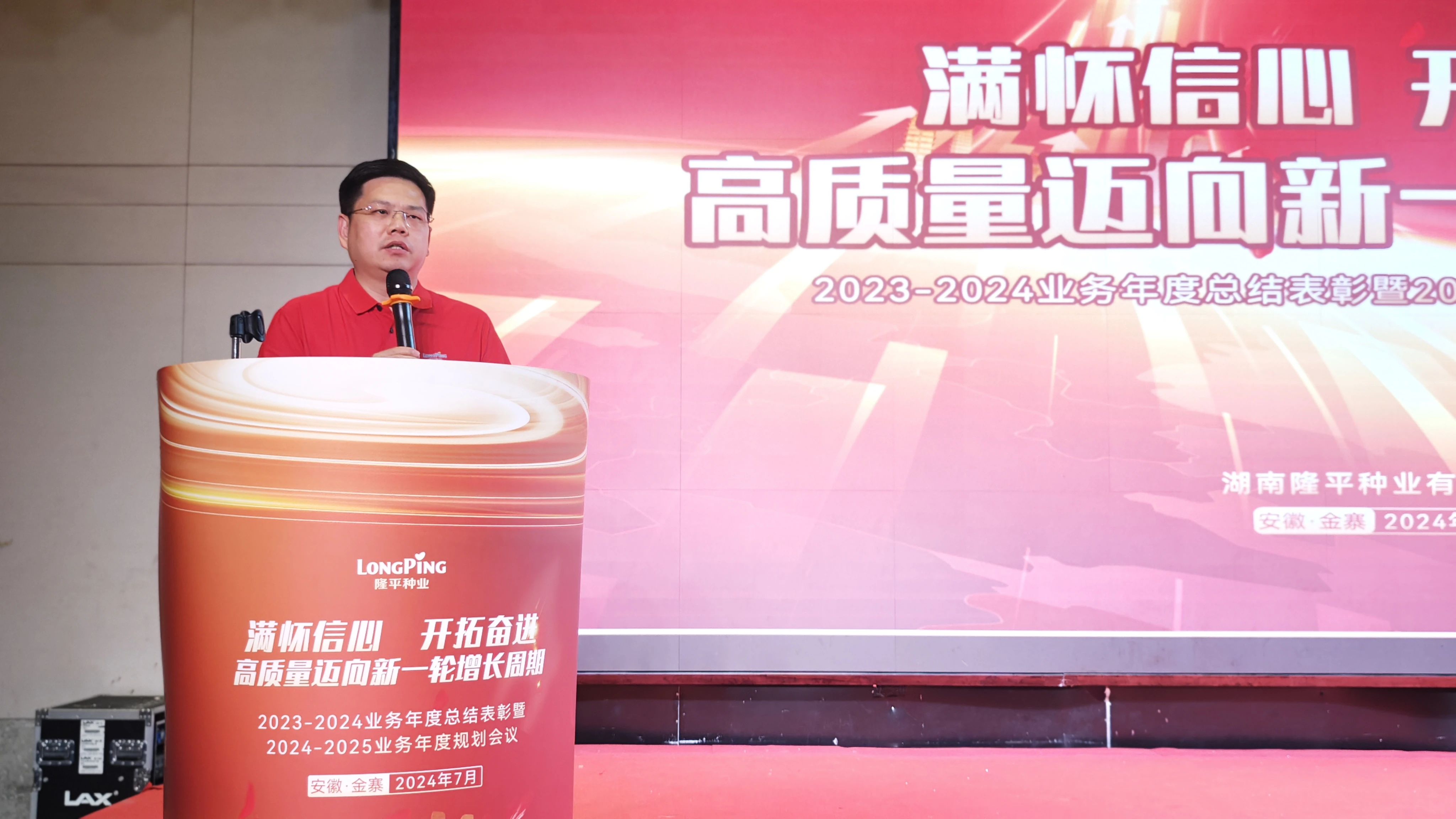 會上,盧成林總經(jīng)理充分肯定了全體隆平人在23-24業(yè)務(wù)年度工作中取得的成績,并表示公司將在集團(tuán)的正確領(lǐng)導(dǎo)下,堅定不移地走高質(zhì)量發(fā)展路線。盧總?cè)娣治隽水?dāng)前面臨的挑戰(zhàn)和機(jī)遇,他強(qiáng)調(diào),公司當(dāng)前正處于重大發(fā)展機(jī)遇期,全體隆平人要滿懷信心,開拓奮進(jìn),把握形勢搶抓機(jī)遇,高質(zhì)量邁向新一輪增長周期。盧總明確了公司24-25業(yè)務(wù)年度的指導(dǎo)思想和目標(biāo),并就下階段工作進(jìn)行了系統(tǒng)部署。他指出大營銷線要聚焦打造新一代大單品、大品系,以增量帶動存量,搶抓市場機(jī)遇,實現(xiàn)總銷量進(jìn)一步增長;服務(wù)保障線要圍繞“五維增效”機(jī)制建設(shè),進(jìn)一步提升服務(wù)效能,激發(fā)團(tuán)隊活力。盧總向全體隆平人提出五點希望和要求:1.銘記初心,傳承隆平精神,做一個正能量、守紀(jì)律、負(fù)責(zé)任、有使命的隆平人;2.持續(xù)提升客戶與公司合作的體驗,為客戶創(chuàng)造價值;3.每位員工都要有主人翁意識,充分認(rèn)識到降本增效是每一位隆平人的事,實現(xiàn)銷量最大化、費用最小化;4.根據(jù)公司指導(dǎo)思想,結(jié)合自己工作目標(biāo),系統(tǒng)謀劃全年工作,做到有目標(biāo)、有思路、有方案、有執(zhí)行;5.堅定信念、實事求是、艱苦奮斗、勇于勝利。全體隆平人要同心協(xié)力,在新一輪增長周期中,將公司做得更穩(wěn)、更強(qiáng)、更大!