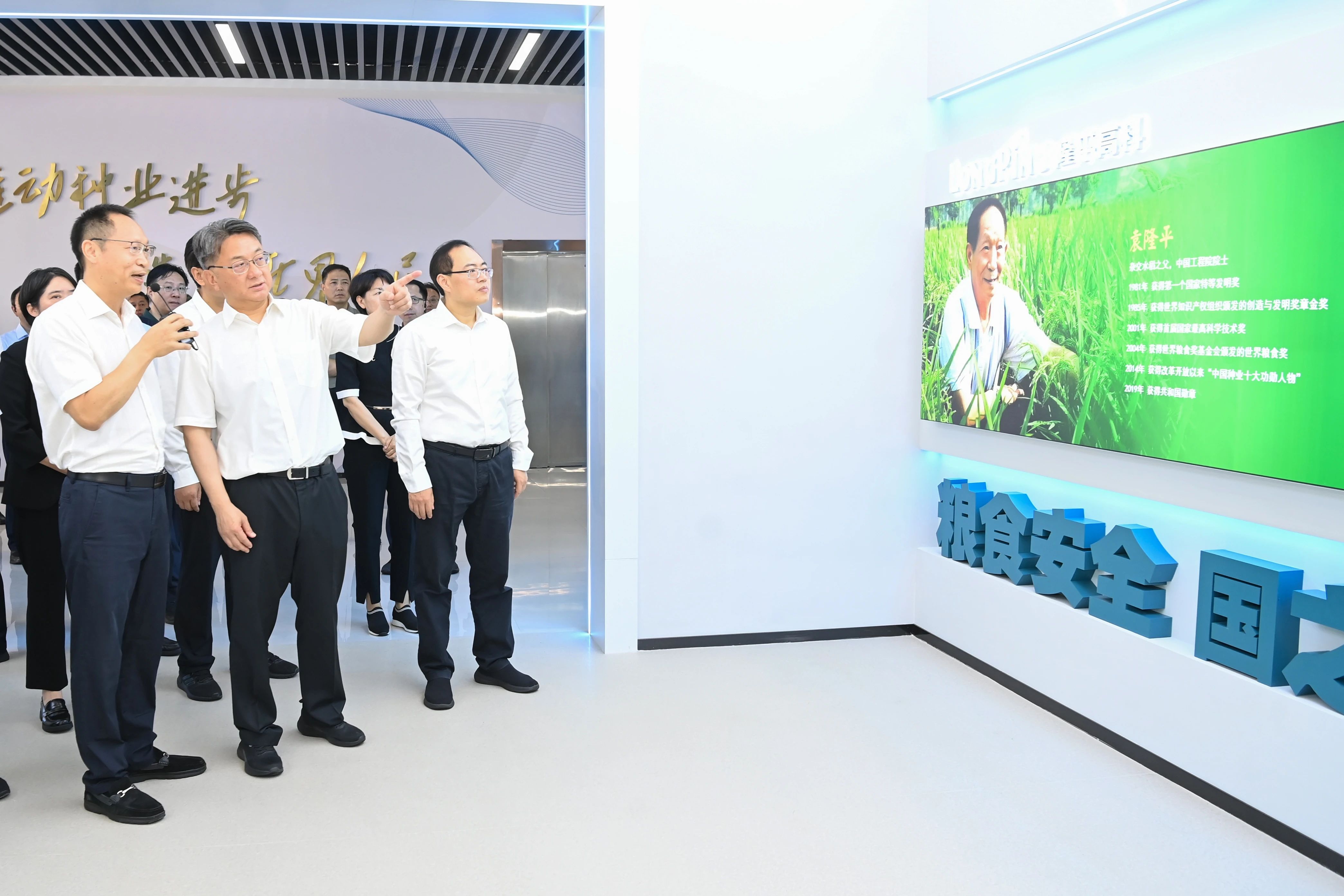 8月28日上午,鹽城市委書記周斌、市委副書記、市長張明康帶隊各縣委書記、縣長,及市委、市政府相關部門負責人來到江蘇隆平基地實地調研。隆平高科監事會主席、隆平種業董事長袁定江、隆平種業總經理盧成林、副總經理鐘其全、人事財務總監楊震宇陪同調研。