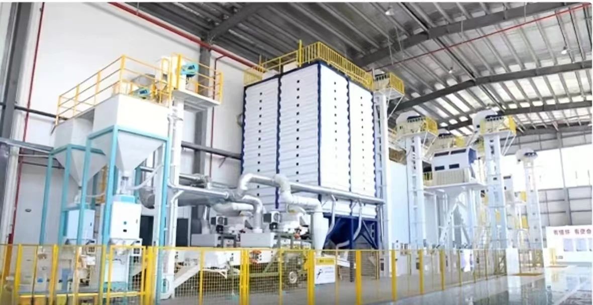 江蘇隆平基地項目是根據國家種業振興行動方案,公司聯合建湖縣委縣政府共創共建的中央制種大縣專項補助資金項目,占地約40畝,建筑面積約2.5萬平方米,主要包括科技創新中心以及現代種子烘干加工倉儲中心,能滿足3萬畝雜交水稻制種倉儲加工包裝產能需求,年制種加工產能500萬公斤以上。在建湖縣委縣政府的大力支持與指導下,江蘇隆平基地已達到投產運行要求?;亟ㄓ袊鴥茸钕冗M、成規模的水熱型房式烘干線,自動化、信息化、智能化加工于一體的加工包裝線,是目前最契合雜交水稻生產加工特點、運行效率高、最實用的先進生產加工線。