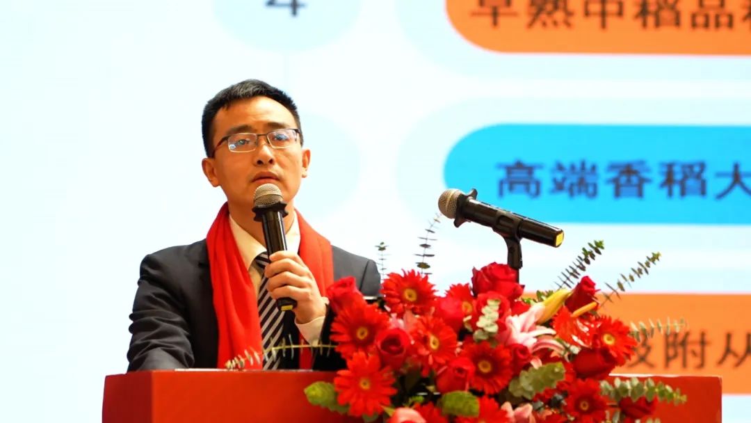 優秀的品種是隆平事業長青的基石。大會首先由隆平高科副總裁、水稻首席專家、種業科學院院長楊遠柱作《守正創新推出系列新品種 颶星閃耀引領隆平新發展》分享,楊院長通報了種業科學院當前品種選育進展,展示了公司強大的科研能力,并重點解讀了隆平種業獨家運作的第五代大品系——颶兩優系列品種的選育情況、特征特性及優勢。楊院長充分肯定了公司颶兩優系列及其他系列品種的市場價值,豐富的品種資源,進一步堅定了客戶與公司的信心。