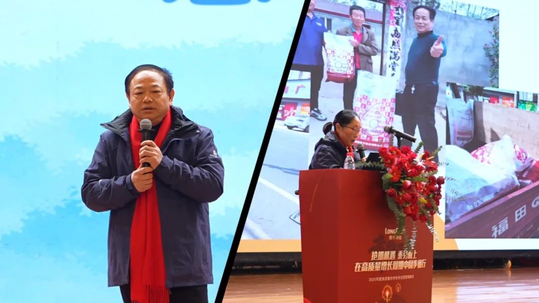 會議最后,隆平種業總經理盧成林作《搶抓機遇 乘勢而上 在高質量增長周期中闊步前行》主題報告。盧總表示,今天會議的各項分享充分彰顯了隆平種業擁有一支強大的代理商隊伍和員工隊伍,當前公司品種資源達到歷史最強,颶兩優系列高質量運作模式得到市場高度認可。同時,盧總指出,過去一年公司各項指標實現了高質量增長,颶兩優系列運作模式取得巨大成功,種糧一體化運作、大單品核心市場基本盤穩定、早熟中稻市場布局等方面都取得了優異成績。盧總強調,“中國種業的領跑者 農業服務的旗幟”是公司的愿景和定位,隆平種業有責任、有義務、有能力、有實力引領行業發展,公司將持續構建體系化競爭優勢,與全體合作伙伴一起打破行業內卷。就2025年度工作,明確了舉全公司之力快速將颶兩優系列打造成高質量大品系、深入推進種糧一體化、加大早熟市場、高端優質稻等細分市場的快速突破等工作目標。
