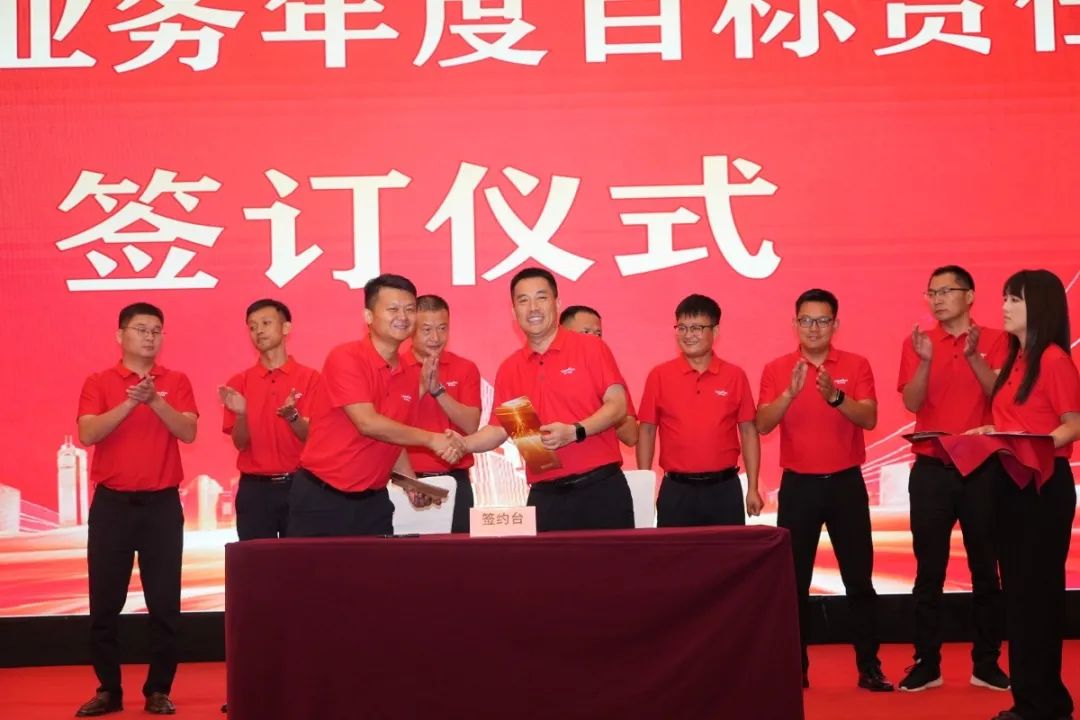 全體與會人員共同見證了營銷各團隊目標責任狀簽訂儀式。各團隊負責人鄭重簽下“軍令狀”。筆落千鈞,展現(xiàn)了各團隊使命必達、目標必成的堅定信念與無畏擔當!