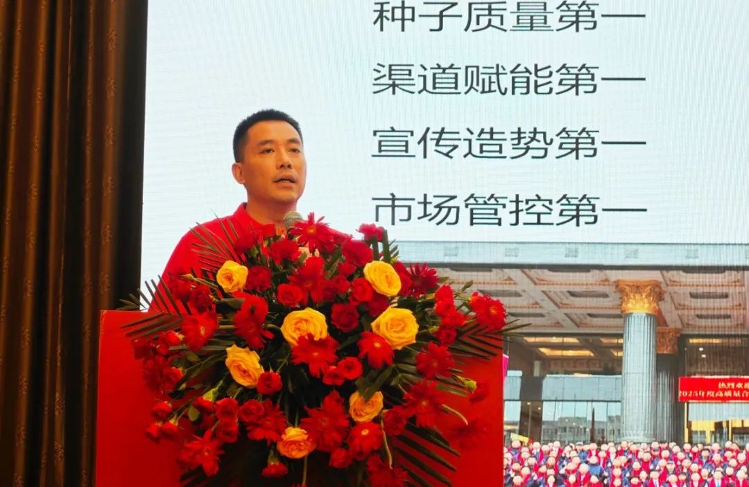 營銷總監(jiān)張一明在《共創(chuàng)颶系大時代 繪就種業(yè)新藍圖》主題報告中,重點解讀了“颶兩優(yōu)系列”品種市場管控的重要性,強調(diào)公司將堅定執(zhí)行系統(tǒng)性營銷模式,強化市場協(xié)同與管控力度,保障市場有序發(fā)展。