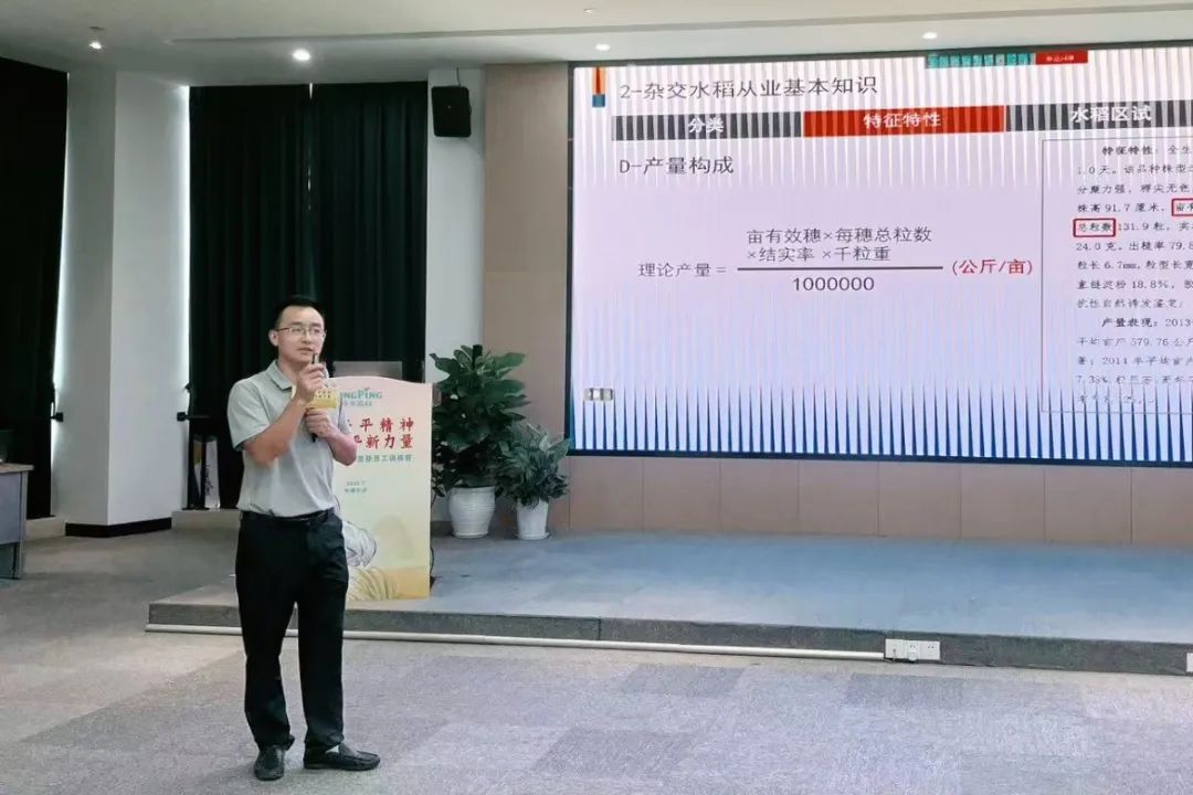技術(shù)服務(wù)部總經(jīng)理肖燃以《雜交水稻基礎(chǔ)知識(shí)——水稻的一生》為主題,生動(dòng)解析了雜交水稻分類、特性、區(qū)試、三蟲兩病等專業(yè)知識(shí),現(xiàn)場(chǎng)新員工們積極主動(dòng)參與討論,精準(zhǔn)把握產(chǎn)品特性。