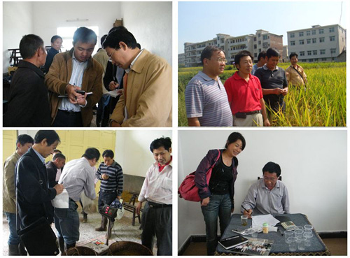 研發中心歐陽經理,栽培專家郭守斌老師等先后9次下基地進行現場考察,督導技術落實情況和策劃專家驗收事宜。他們親自下田開展調查,了解病蟲為害以及產量構成情況。營銷中心鐘其全經理也在百忙之中,到漣源古塘鄉塘邊村示范基地,協助進行公司內部實收預測產,了解驗收具體情況。在關鍵技術的實施環節,除了現場指導外,電話督導也一直保持暢通。歐陽經理說:“只有做到技術的充分落實到位,在各項環節中都成竹在胸,我們就能保證穩打勝仗。”