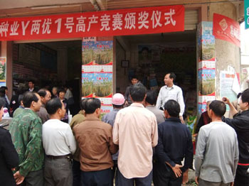 畝產687公斤……畝產725公斤,Y兩優1號的高產栽培數據在農戶田間一次次被刷新,各地農業主管部門、鎮政府、新聞媒體都一起見證了“瀑布稻”Y兩優1號的實力,各個水稻種子銷售處都圍滿前來購買隆平種子的農民。