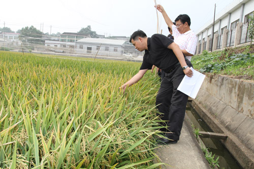 亞華種業科學院院長、隆平高科雜交水稻科研委員會主任楊遠柱研究員親自給考察團作報告,介紹亞華種業科學院的品種研究最新進展、研究技術、研究思路,以及超級雜交早稻的發展方向,并與院長助理楊廣一起帶領考察團前往實驗基地現場觀摩實驗品種的田間表現。