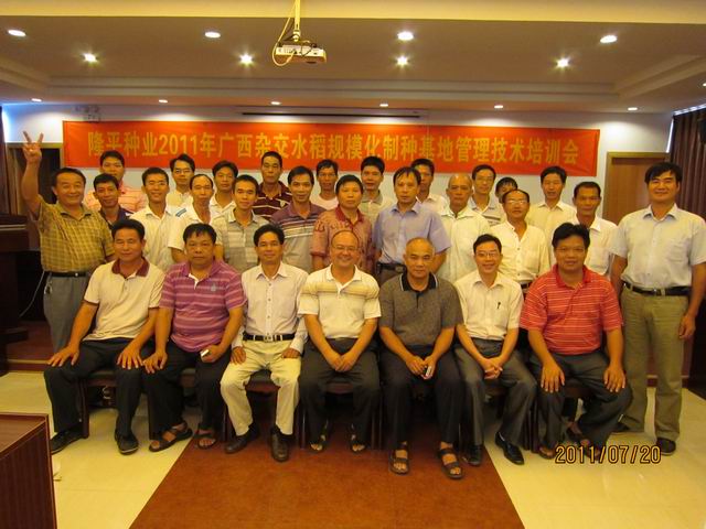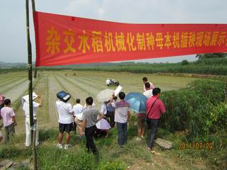 7月20日,生產(chǎn)中心廣西基地2011年雜交水稻規(guī)模化制種管理技術(shù)培訓(xùn)暨母本機(jī)插秧制種現(xiàn)場(chǎng)展示會(huì)在廣西南寧成功舉行,來(lái)自廣西生產(chǎn)基地的生產(chǎn)商和技術(shù)員及江西、廣東的生產(chǎn)商代表共35人參加了培訓(xùn)。