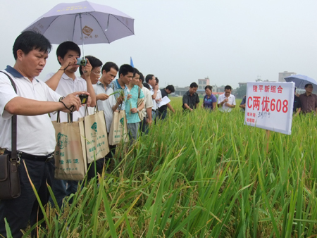 7月20日,隆平種業廣西分公司在玉林市召開了C兩優608和Y兩優1號的現場觀摩推薦會,來自玉林、欽州、貴港等地的代理商、零售商及農業局部門領導近80人參觀了示范現場。