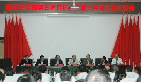 9月19日下午, 超級雜交稻第三期目標攻關(guān)重大突破記者見面會在湖南雜交水稻研究中心舉行。雜交水稻之父袁隆平院士,農(nóng)業(yè)部驗收組組長、中國水稻所所長程式華,湖南省農(nóng)業(yè)廳總農(nóng)藝師劉年喜,湖南省農(nóng)科院黨委書記何鐵林、院長鄒學校,隆回縣委書記鐘義凡參加了記者見面會。見面會由湖南省政府新聞辦公室新聞發(fā)布處處長陽芳菲主持。