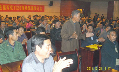 參觀完示范田后,接著進行了室內交流會議。首先由定遠縣隆平種業技術栽培專家對今年定遠縣兩優1128表現及種植技術要點進行了報告。隨后是示范零售商和示范農戶發言,兩位農戶代表樸實的語言、真誠的笑容使會場的氣氛步入了高潮。隆平種業皖東區域經理李奎詳細介紹了公司情況及2012年公司品種的操作模式,李經理激情的演講、詼諧的語言使會場氣氛又一次達到高潮。會議最后由定遠代理商興農種業陳增援經理對本次觀摩會進行了總結及對下年度的示范計劃進行了部署。