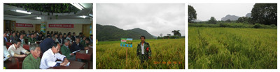 在室內(nèi)會議上,江西分公司銷售部彭經(jīng)理對再生稻的特征特性、栽培技術(shù)等方面給大家答疑解惑。并且,對隨手采來的穗子進(jìn)行的現(xiàn)場有獎競猜活動,使會議達(dá)到了高潮,再生稻主穗基本在190粒左右,結(jié)實率85%以上。