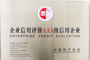 熱烈祝賀我公司在中國種子協會開展的2011年種子行業信用評價中榮獲“中國種子行業信用評價AAA級信用企業”。公司是首批獲評的AAA級信用企業之一,是此次評選結果中最高信用級別企業。