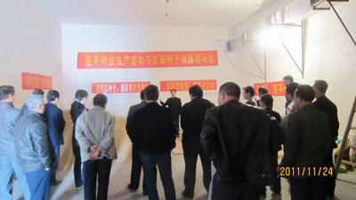 會議由我司江西基地負責人夏小勇經理主持,宜黃縣種子管理站站長徐仁水、生產商童林、江西分公司總經理湯長云和我司生產中心副經理鄧波分別就此次種子轉商的意義及隆平質量理念與要求等作了重要講話。