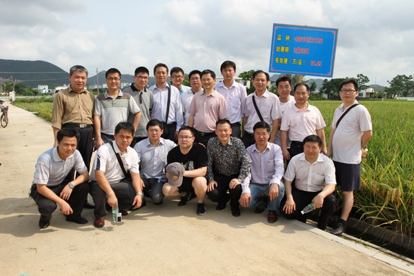 為了分享這一喜訊,也為了更好的熟悉品種,4月27日上午,公司營銷總監范小兵帶領隆平種業營銷精英團隊一行十多人,前往田獨鎮品種展示基地學習考察。