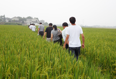 為使員工更直觀地了解親本生產技術,座談會后,參會人員輾轉幾個基地,由各位專家現場為親繁中心的員工講解相關知識。從關山基地的父本繁殖田的提純技術到春華基地的核心種子生產,再到靈川基地的兩系不育系冷灌繁殖田,進一步促進了員工對親本生產技術理性認識和感性認識的結合。
