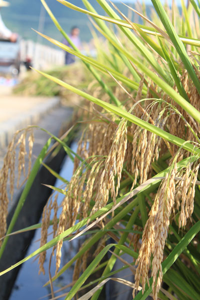 驗收小組在深08S/R1813的示范田中隨機選取了三個測產點,每個點劃定50平方米面積,現場收割,脫粒,共計收割面積150.08平方米,毛重為244.3公斤;折合成含水量13.5%的干谷,凈重為212.5公斤,換算成畝產為944公斤。