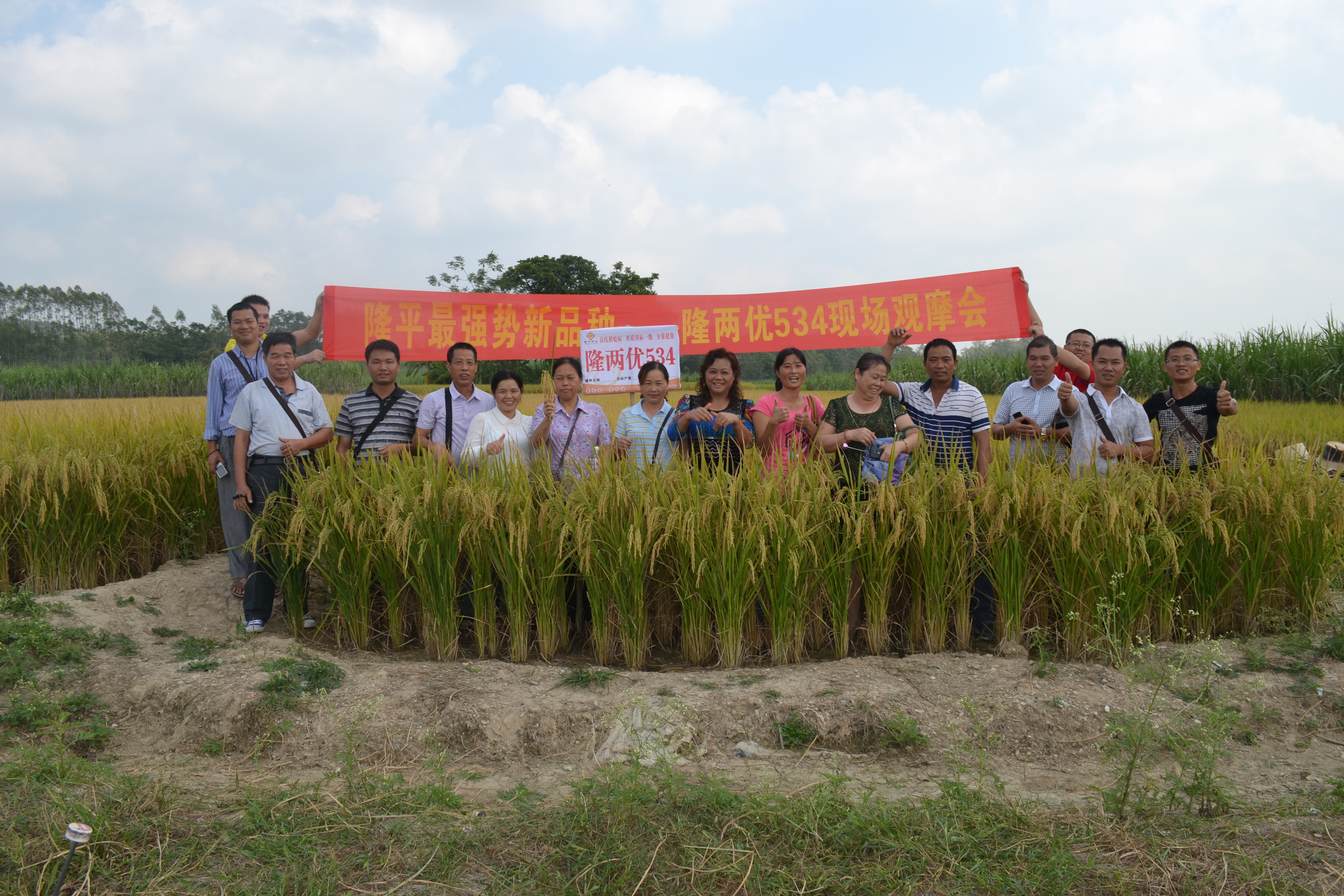 10月19日,南寧還是艷陽高照,來自南寧六城區各鄉鎮的零售商20多人在公司人員的組織安排下,先后觀摩了蘇圩鄉鎮的隆兩優534示范片和五塘鎮的深兩優1號、深兩優1813示范片。今年晚造南寧多數品種受臺風影響,感染細菌性條斑病相當嚴重,但我公司的隆兩優534、深兩優1號和深兩優1813抗性表現突出,充分展現了公司品種超強的抗病能力。