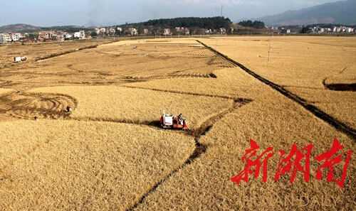1月3日,寧遠縣水市鎮(zhèn),村民在收割晚稻。收割的晚稻,水分在14%左右,可以在田間直接賣給米廠碾米。近兩年,水市鎮(zhèn)農(nóng)民探索出“禾上曬谷、延后收割”的種稻模式。他們種植的水稻品種“深優(yōu)9586”可推遲到“冬至”前后收割,每畝節(jié)約曬谷、搬運人工費約90元。2015年,水市鎮(zhèn)“禾上曬谷、延后收割”晚稻推廣種植面積達1.2萬畝。