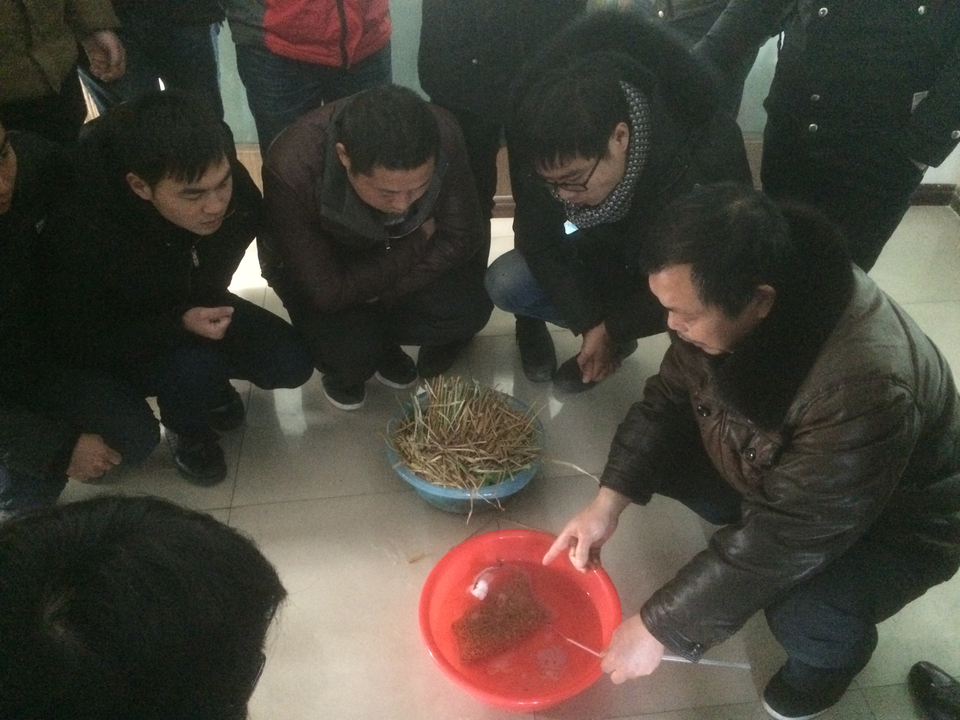 第五部分是技術服務部周老師講解了浸種催芽知識并進行了簡易催芽技術演示,品種表現中芽率很關鍵,下階段工作中很多地方會用到浸種催芽知識,周老師通俗好記的自編順口溜加上豐富的實踐經驗讓大家對浸種催芽技術有了基本的了解。隨后兩天進行了農村種植戶常用浸種催芽方法演示讓大家有了更直觀的體會。