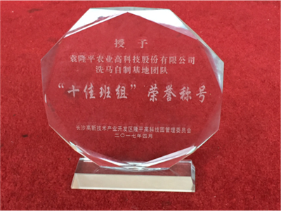 我公司洗馬自制基地團隊以其精湛的生產技藝,高效的團隊管理和創新工作成果在園區近200家企業,數百個團隊中脫穎而出,榮獲十佳班組稱號。
