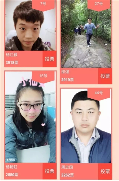5月30日,由公司行政人事中心組織的“青春放歌 唱響隆平”第一屆K歌大賽正式結束。本次大賽歷時23天,陪伴公司員工度過了一個歌聲飛揚的五月,得到了大家的高度關注和積極參與,一度成為大家談話的焦點。截止比賽結束,此次大賽成功報名人數為41人,投票人次達25382,訪問量突破了120000次。 在大家的積極轉發和熱情參與下,本次大賽競爭異常激烈,各位選手的得票數一路相繼攀升。 經過激烈的比拼,本次大賽最終角逐出了人氣獎各獎項得主。 本次大賽“最具人氣歌手”由來自財務中心的楊江毅奪得,他以細膩真摯的歌聲打動了大家,一路領先,最終獲得了3918票,以極大的優勢榮居榜首。超人氣歌手則由來自物流質監加工中心的邵煌和財務中心的楊艷虹獲得,他們的最終得票數分別為2919票和2550票。來自生產中心的周忠國,行政人事中心的翁一玉和營銷支持部的周小凡則分別以2262票、2017票和1869票摘得了本次比賽的人氣歌手獎。 為充分肯定大家的參與熱情和唱功實力,經大賽組委會討論決定,還將增設實力唱將若干名,敬請期待。