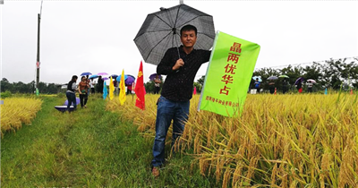 上午8點,在隆平品牌西南區(qū)域舒經(jīng)理的組織下,大家一同前往觀摩田塊。盡管大雨傾盆,但大家的熱情絲毫不減。為了讓大家能更清楚的了解晶兩優(yōu)華占,冒著大雨,舒經(jīng)理親自到田間,教大家如何進行品種優(yōu)勢比較。舒經(jīng)理從分蘗、抗倒性、抗稻瘟病、抗稻曲病、結實率五個方面進行了詳細講解,并進行了同田比較,讓參會人員對品種的優(yōu)勢有了清晰的了解。