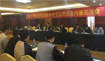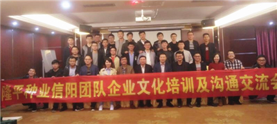 2017年10月20日,隆平種業信陽團隊企業文化培訓及溝通交流會在信陽順利召開。公司運營副總經理楊文星先生、人事財務總監楊震宇先生、隆平品牌負責人張一明先生、晶隆品牌負責人劉俊先生、營銷支持部相關人員出席了本次會議,公司信陽團隊三十余人參加了本次會議。