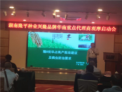 隨后,興隆品牌負責人李奎為大家講解公司發展歷程、未來發展方向以及目前種業發展的形勢,并向代理商推介興隆品牌后續強勢品種(夢兩優534、簡兩優黃莉占、隆晶優534、隆優534、)。他表示希望大家在選擇的道路上抓住機遇,強大的公司、強勢的品種不容錯過。