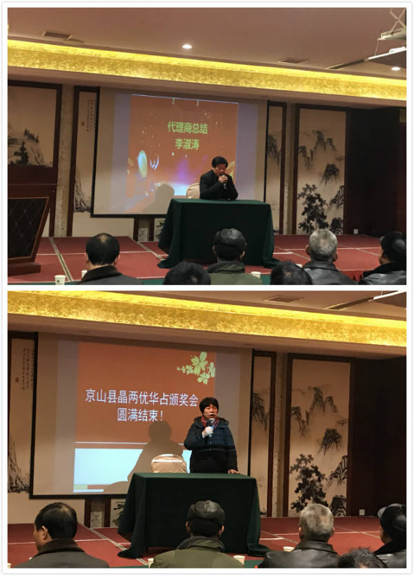2018年1月20日,京山縣“晶兩優(yōu)華占”高產(chǎn)擂臺賽頒獎大會在豪威凱瑞大酒店召開,讓晶兩優(yōu)華占火了起來,也讓這個冬天火熱起來了。 會議首先由區(qū)域人員對晶兩優(yōu)華占的突出優(yōu)勢和米質(zhì)特點進行了講解,讓零售商和農(nóng)戶深入了解了晶兩優(yōu)華占的優(yōu)勢,鐘祥、隨州米產(chǎn)對晶兩優(yōu)華占定點收購、優(yōu)先收購、加價收購的 事實更是大大增強了農(nóng)戶的信心。 接著,零售商代表陳總分享了他與晶兩優(yōu)華占的故事,陳總介紹到,2017年他參加了大大小小十多場晶兩優(yōu)華占測產(chǎn)會,親眼見證了一個又一個高產(chǎn)數(shù)據(jù)的誕生,這讓他對晶兩優(yōu)華占更加放心,更加認(rèn)可了。 本次會議現(xiàn)場公布了京山縣晶兩優(yōu)華占2017年度高產(chǎn)擂臺賽的獲獎名單,并為獲獎農(nóng)戶頒發(fā)了豐厚的獎品。 分享交流環(huán)節(jié),兩位獲獎農(nóng)戶代表分別就自己種植晶兩優(yōu)華占的經(jīng)驗進行了分享,讓大家對晶兩優(yōu)華占高產(chǎn)量、易管理的優(yōu)勢有了更加清晰的了解。 代理商李總則分享了自己對農(nóng)業(yè)現(xiàn)狀和前景的見解,如今的市場對米質(zhì)的要求越來越高,因此,選擇米質(zhì)好的品種,不僅零售商好賣,而且農(nóng)戶種的放心,而晶兩優(yōu)華占就是零售商和農(nóng)戶的上好選擇。 在這辭舊迎新的時刻,京山縣晶兩優(yōu)華占高產(chǎn)擂臺賽頒獎大會圓滿結(jié)束,通過此次會議我們堅定了信心,統(tǒng)一了思想,相信未來晶兩優(yōu)華占必能不負(fù)其造福之名,為更多農(nóng)戶送去豐收的希望。